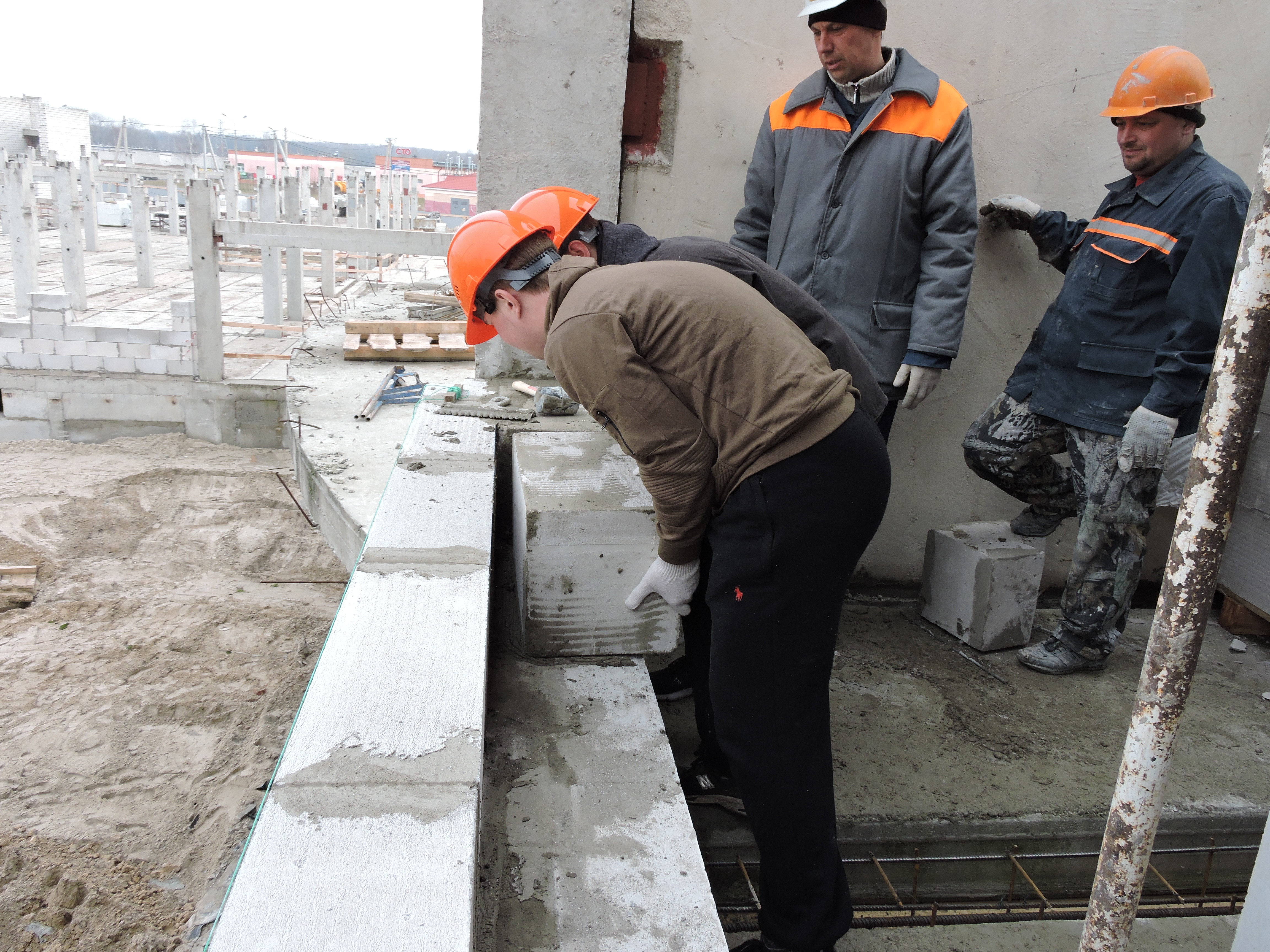 В ходе проведения занятия производитель работ филиала «Строительное управление №165» Иван Галькин и бригадир бригады каменщиков Сергей Скрипунов рассказали учащимся о проводимых строительно-монтажных работах на объекте, особенностях кирпичной кладки и многое другое. Ребята на данном объекте смогли получить первые практические навыки по укладке газосиликатных блоков, тем самым внесли свой вклад в строительство школы.